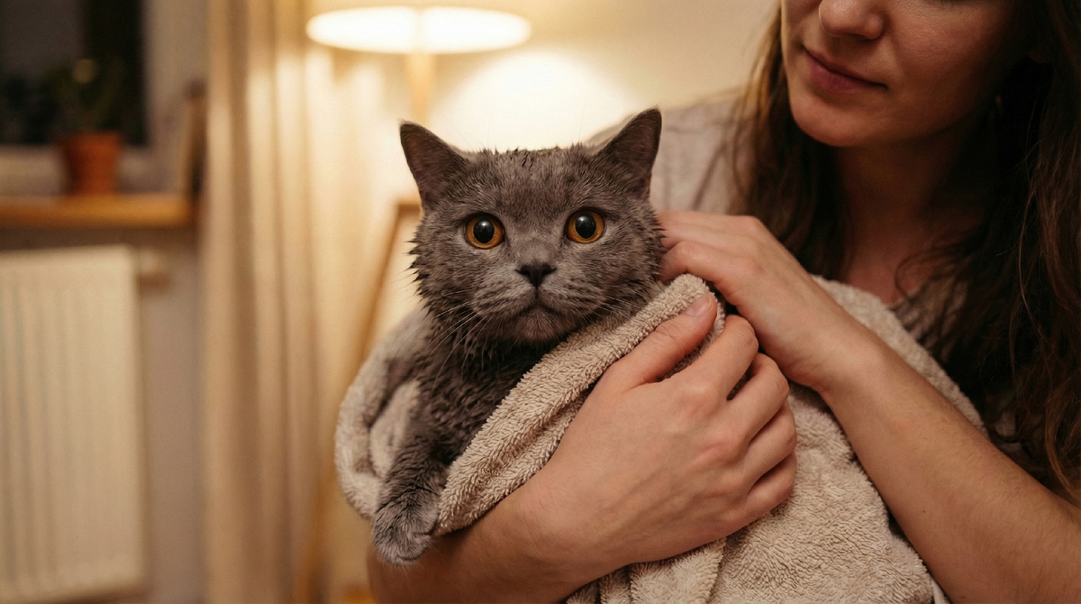 Борис мыться не хотел. Шипел, царапал руки - три длинных красных полосы на левом запястье. Людмила терпела, намыливала ему бока, лапы, живот. Вода стала серой, грязной. Завернула кота в полотенце, промокнула. Осмотрела ухо - царапина неглубокая, но воспалённая, красная.