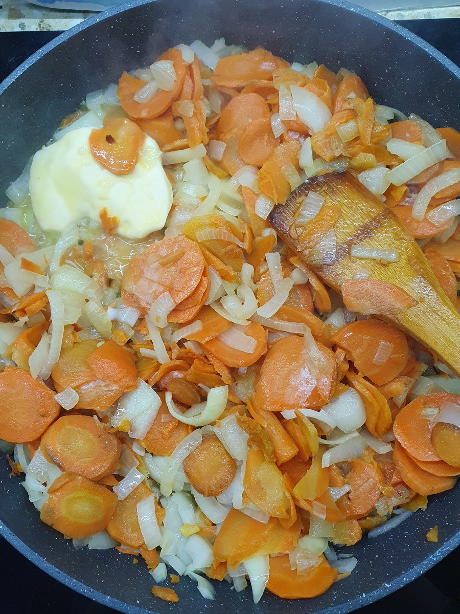 Вот и решила сделать, пусть муж завтракает. Потушила лук с морковью и кусочком сливочного масла