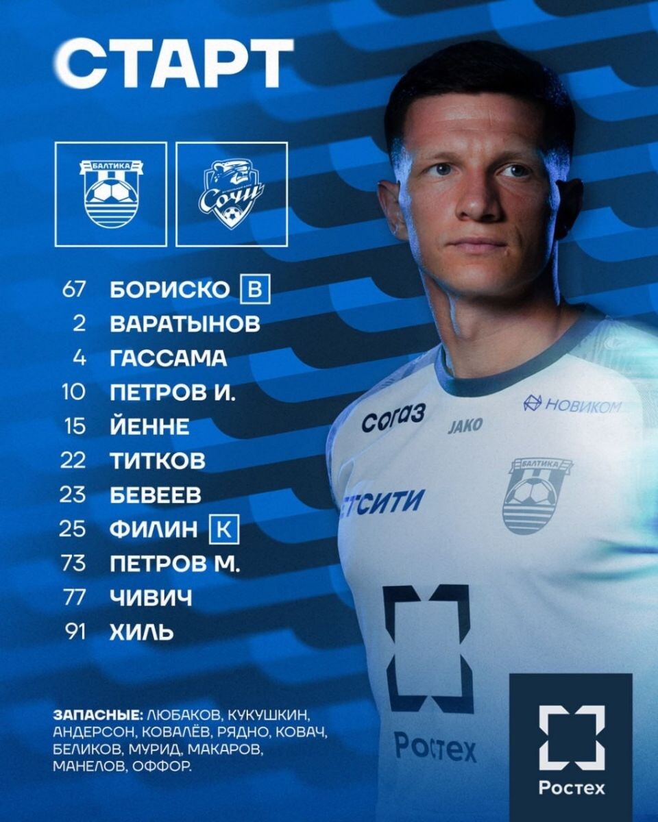 ФК "Балтика": объявлен стартовый состав на домашнюю встречу с ФК "Сочи