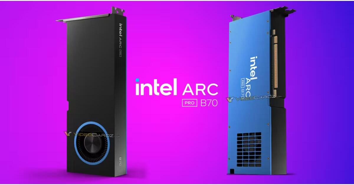 Опубликованы первые изображения видеокарты Intel Arc Pro B70 с 32 ГБ памяти — профессиональной модели на базе топового GPU Battlemage, которая будет официально представлена 25 марта. В отличие от игровой версии Arc B770 с 16 ГБ памяти, выход которой остаётся под вопросом из-за ситуации с рынком памяти, Arc Pro B70 явно ориентирована на профессионалов. Ещё по теме: На фото видно кулер турбинного типа, что необычно для линейки Arc. Технические характеристики впечатляют: 32 ядра Xe, TDP от 160 до 290 Вт и производительность до 367 TOPS. Для питания достаточно одного восьмиконтактного разъёма, что упрощает сборку в рабочих станциях. ⚡Подписывайтесь на канал itzine и канал подкаста ForGeeks в Telegram! Там самые свежие новости про технологии, гаджеты и космос. Intel пока не раскрывает, в каком режиме достигается максимальная производительность, что позволяет использовать разные конфигурации под профессиональные задачи. Такая видеокарта обещает стать серьёзным конкурентом на рынке рабочих ви