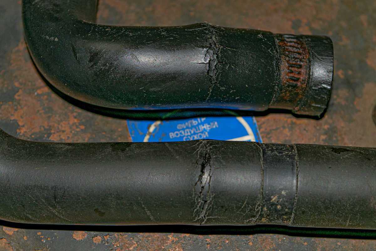 Я насторожился. Смотрю на бачок с охлаждающей жидкостью, а он пуст! Полез осматривать шланги системы охлаждения, и как обычно, нашёл течь в шлангах, идущих к печке! Не первый раз трескаются именно эти шланги.