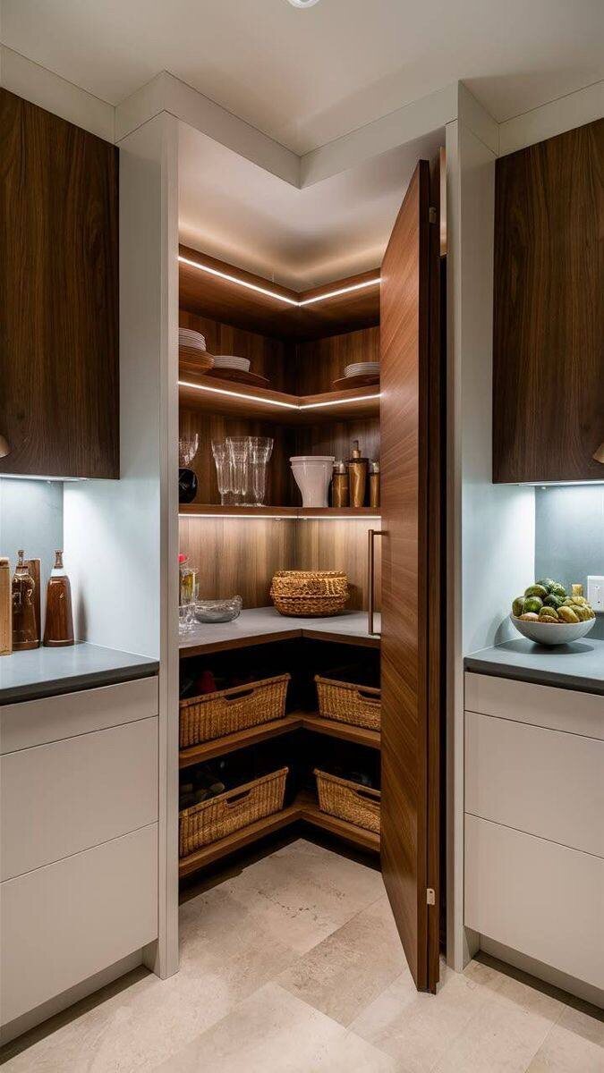 ✨ Угловые шкафы часто превращаются в «чёрную дыру», где теряются вещи и пространство используется неэффективно. Но при правильном подходе этот угол может стать одним из самых удобных мест на кухне 👇 1️⃣ Мини-кладовая за высокими дверцами 🚪 Можно оформить угол дверцами во весь рост - внутри разместить открытые полки. Получается компактная кладовая, где удобно хранить всё: от круп до бытовой техники. 2️⃣ Ниша для техники ☕ В углу можно сделать открытую зону для кофемашины, тостера или другой техники. Так угол не пустует, а кухня выглядит аккуратнее без лишнего визуального шума. Ещё удобнее — добавить выдвижную подставку. 3️⃣ Угловой выдвижной шкаф 📦 Специальные механизмы позволяют использовать весь периметр угла. Полки полностью выезжают, и доступ к вещам становится простым и удобным. 4️⃣ Крутящиеся системы (карусели) 🔄 Классическое, но до сих пор очень удобное решение. Полки вращаются, и всё содержимое легко достать без «ныряния» вглубь шкафа. 5️⃣ Дверцы-гармошка 🚪 Такие фас