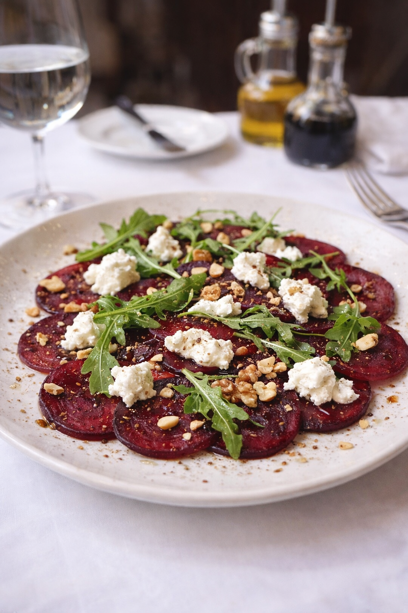 Рецепт карпаччо из запечённой свеклы с козьим сыром