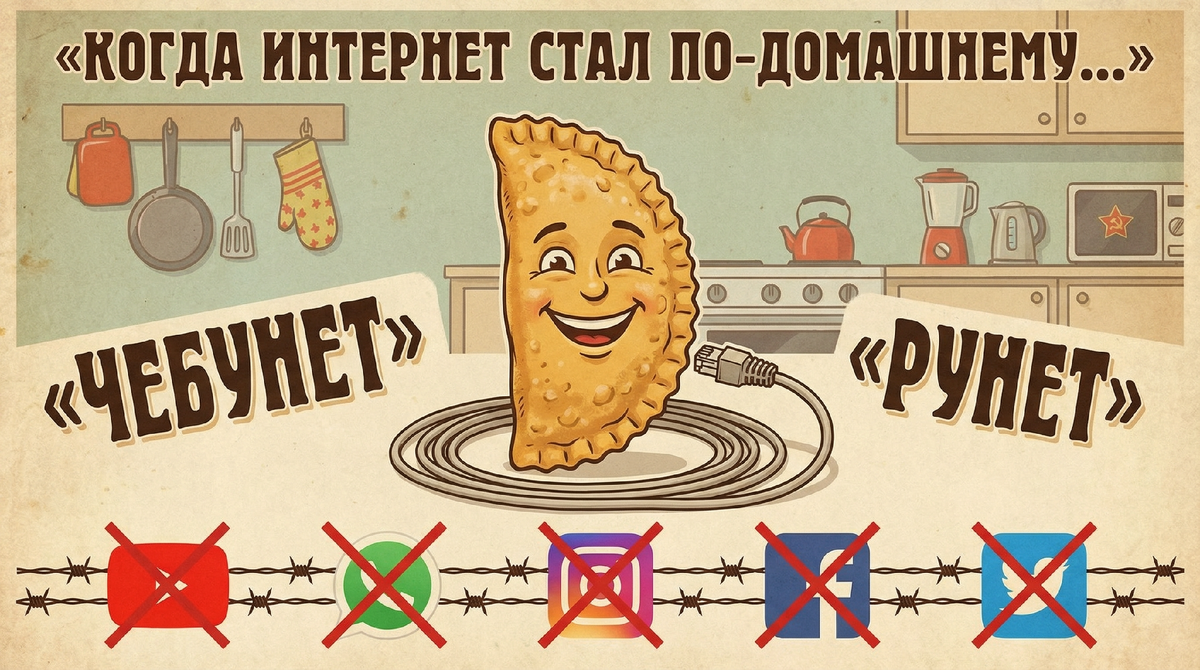 Термин «Чебурнет» — это народное (ироничное) название российского проекта по созданию «суверенного интернета». По задумке, если внешний мир вдруг перестанет подключать Россию к глобальной Сети, в стране должен работать автономный интернет — свой, родной, с «ВКонтакте» и Госуслугами, но без YouTube и зарубежных мессенджеров. Название придумано в духе мемов: «чебурек» — типично российская, домашняя закуска, а «нет» — это интернет. В итоге получилось: Чебурнет — такой уютный, вкусный, немного замкнутый российский интернет. Термин «Чебурнет» — это народное (ироничное) название российского проекта по созданию «суверенного интернета». По задумке, если внешний мир вдруг перестанет подключать Россию к глобальной Сети, в стране должен работать автономный интернет — свой, родной, с «ВКонтакте» и Госуслугами, но без YouTube и зарубежных мессенджеров. Название придумано в духе мемов: «чебурек» — типично российская, домашняя закуска, а «нет» — это интернет. В итоге получилось: Чебурнет — такой уютн