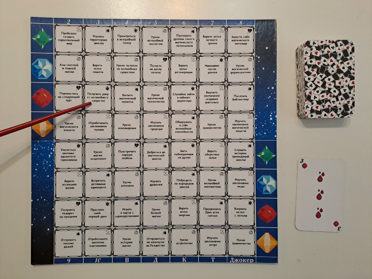 Привет, девчонки🌷 Сегодня я решила поиграть в "Вышивай и твори магию". Очень давно не играла в эту игру и изрядно соскучилась. Мне предстоит сыграть 13-й ход. Для начала давайте вытянем карту, чтобы определить, какую искать карточку с заданиями. Мне попалась красная 3-ка, и на поле ей соответствует карточка "Получить рану от волшебного существа". Не самое приятное событие. Надеюсь, задания там будут выполнимые)) И да, все задания здесь я так или иначе могу выполнить. Я не буду вдаваться в долгие размышления и просто скажу, что я выбрала задание: "800х на сюжете с когтистым животным". У меня есть несколько процессов с подходящими животными: леопарды, кошки, лисы, собаки (они, оказывается, есть на "Вышивальщицах" и даже в большом количестве). Но я решила исходить из тех процессов, которые у меня в этом году еще не вышивались. И выбор пал на работу "Лиса под деревом". Давненько я не вышивала этот процесс, так что с удовольствием добавлю на него 800 крестиков. Ну вот я уже и до кончика х