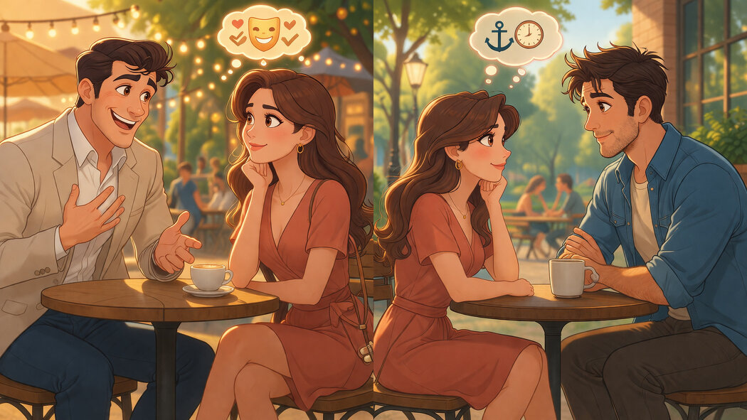 В начале отношений почти все стараются выглядеть лучше. Это нормальная часть знакомства. Вопрос в другом: остаётся ли человек собой или полностью подстраивается под вас. Это не всегда видно сразу, потому что в начале человек может выглядеть очень внимательным, включённым и подходящим. Первый признак - согласие во всём. Вы говорите, что любите одно, он тоже это любит. Вы чем-то недовольны, он сразу на вашей стороне. У него как будто нет своих вкусов и границ. Это выглядит приятно, но по факту вы видите не человека, а удобную версию. Второй признак - резкие обещания и быстрые выводы. Через короткое время он говорит, что вы идеальная, что он такого не чувствовал, что всё серьёзно. Это не про глубину. Это про попытку быстро закрепиться рядом с вами. Третий признак - нестабильность. Сегодня он включён, пишет, звонит, интересуется. Завтра исчезает или резко меняет поведение. Искренность не выглядит как качели. Она выглядит ровно и понятно. Четвёртый признак - расхождение слов и действий. Он