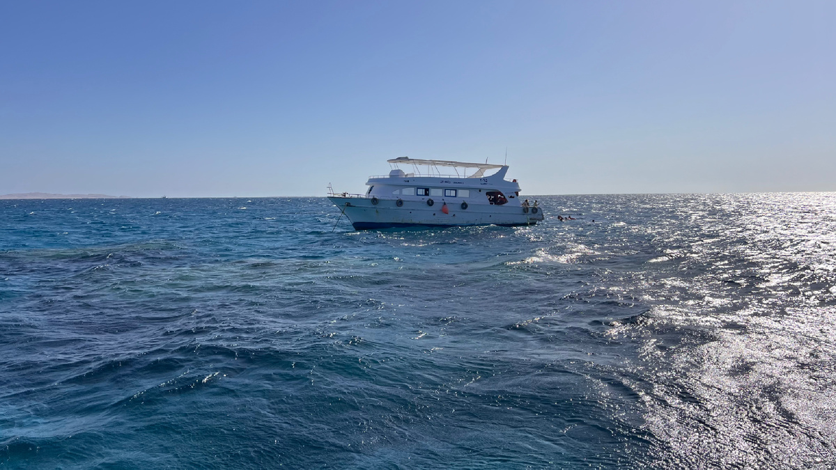 Мы все дальше отплывали от берега, а цвет воды приобретал ещё более глубокий синий цвет… Красивое оно, Красное море, хоть и синее😊