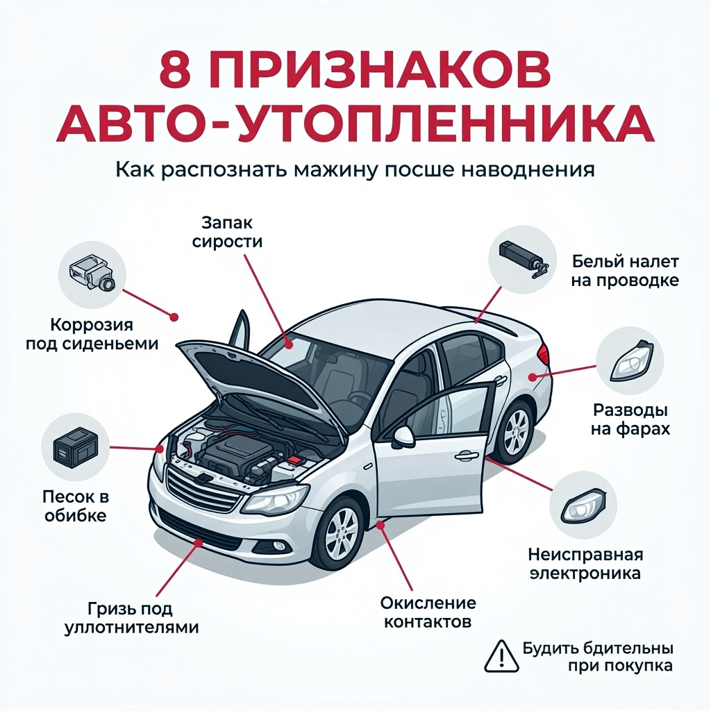 🌊 «Утопленник» на авторынке: 8 признаков, что машина побывала под водой (и продавец об этом молчит)