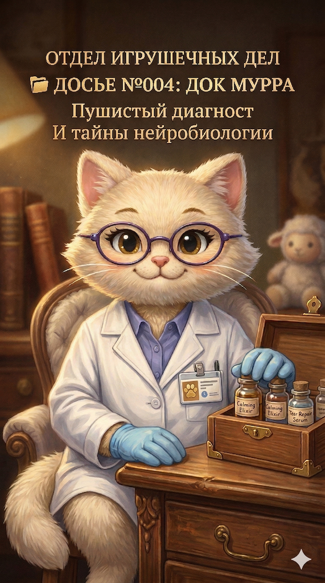 Но однажды Отдел столкнулся с делом, которое зашло в тупик. Логика не работала, режим был идеальным, а ребенок всё равно плакал. Именно тогда на сцену вышла она — наш главный судмедэксперт, знаток детской анатомии и нейробиологии. Белая, пушистая, с неизменным стетоскопом и аналитическим взглядом поверх очков. Док Мурра.