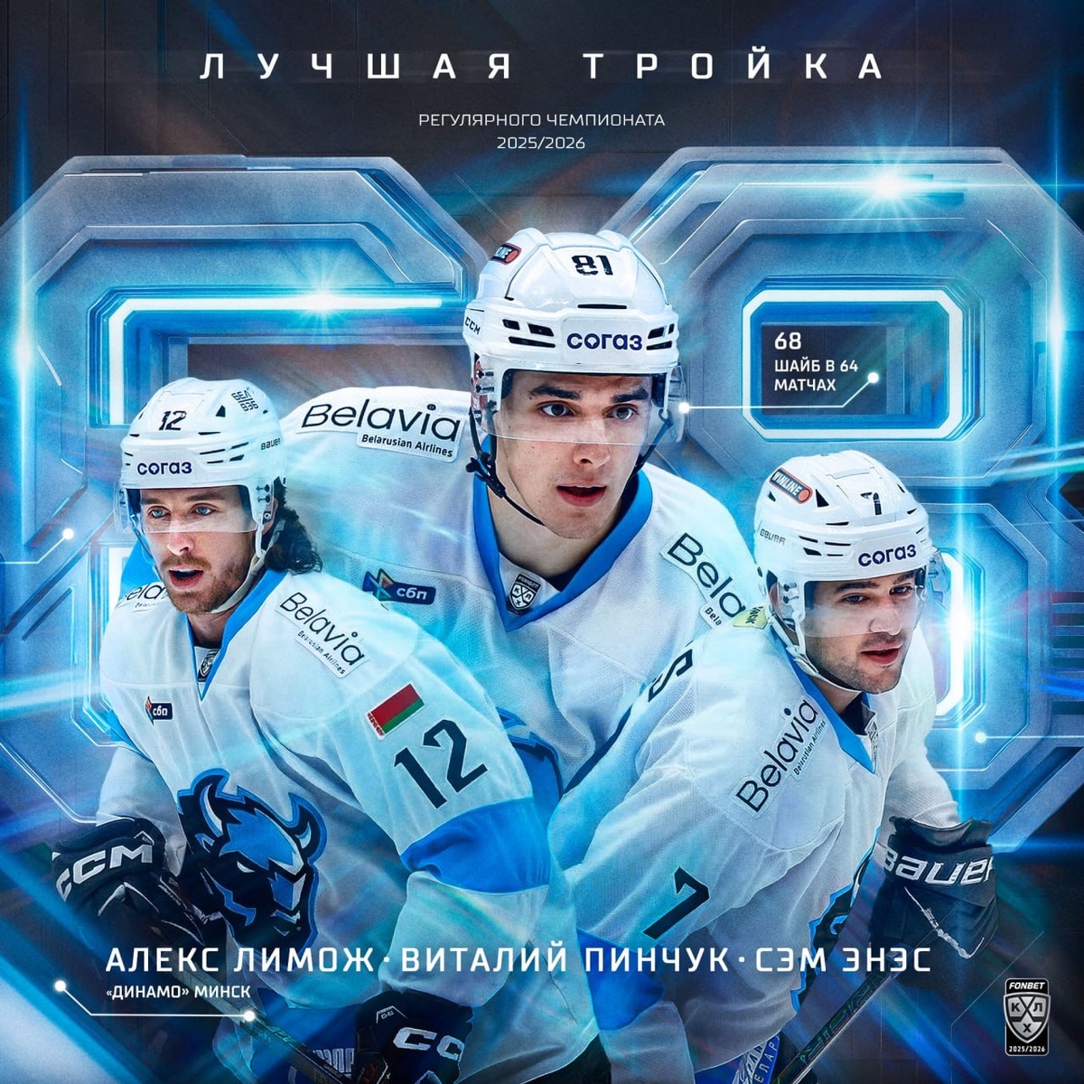 Лучшая тройка регулярного сезона? Минские парни, которые забросили 68 шайб: Сэм Энэс – Виталий Пинчук – Алекс Лимож 🦬
