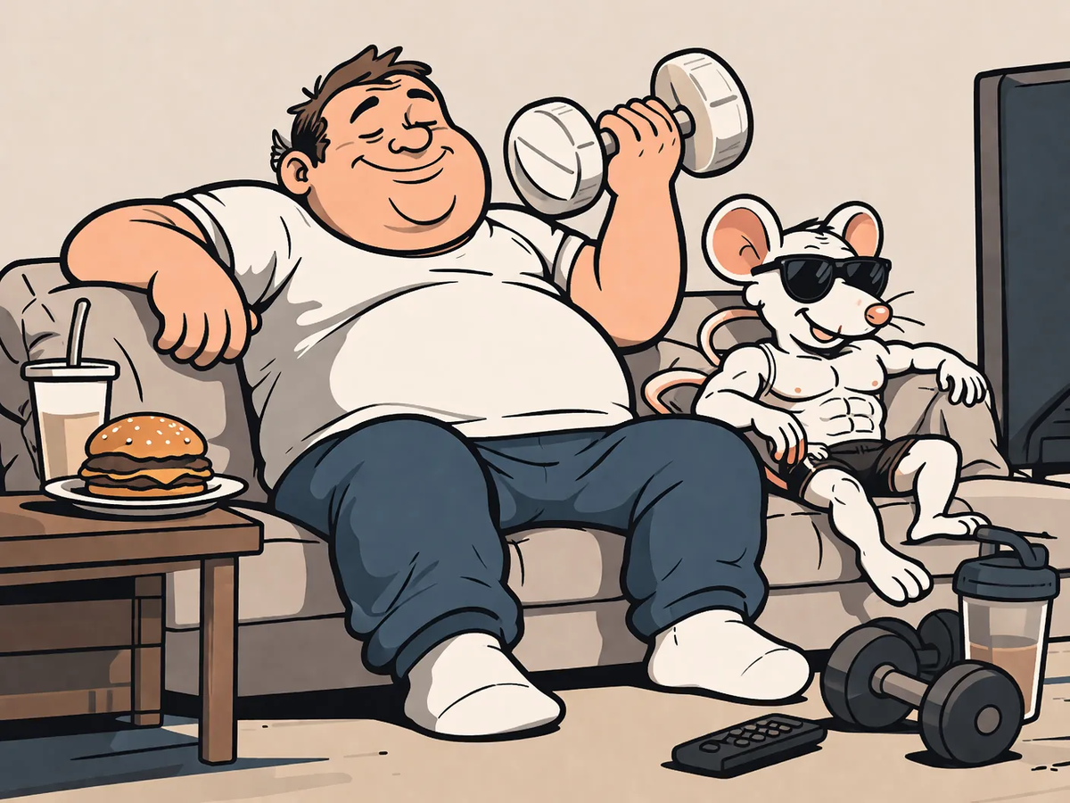 Проблема Оземпика, модного сейчас укола от похудения, в том, что он вместе с жиром убирает также и мышцы, что вредно для внешности и для здоровья. Шведские учёные разработали новый препарат, так называемое «Соединение 15», который заставляет мышцы поверить, будто они в спортзале, и начать расти. Пациент съел таблетку, лежит на диване и смотрит сериал. Тем временем жир из его тела уходит, а мышцы растут… или, во всяком случае, так хочется думать пухляшам, которые любят шоколадки и гамбургеры сильнее, чем гантели и беговую дорожку.