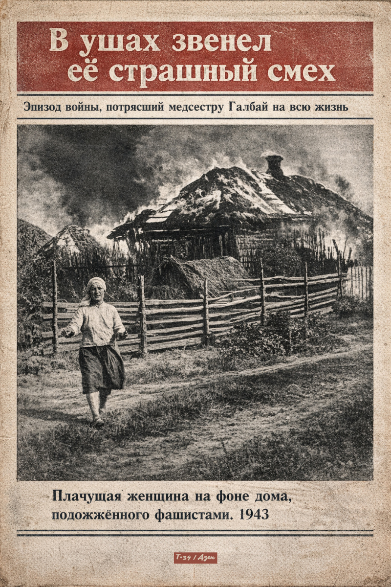 Много десятилетий минуло с того дня, когда в июне 1961 года учительница Саханской школы, удостоенная высокого звания матери-героини, медсестра, принимавшая участие в Курской битве, Галбай Елизавета Михайловна рассказала о событиях, которые оставили неизгладимый след в её душе Девятнадцати лет от роду она ушла на фронт. Молодая, ещё не познавшая материнства девушка оказалась в самом пекле величайшего сражения — в дни боёв на Курской дуге летом 1943 года. Судьбе было угодно, чтобы именно там, среди пепелищ и грохота орудий, перед её глазами развернулась картина, которую не в силах были стереть никакие прожитые годы. Танковая бригада, в составе которой нёс службу батальон Елизаветы Михайловны, с боями освобождала населённые пункты один за другим. На рассвете подразделение вышло к небольшому лесу. Впереди открывалось разрушенное русское село. Чёрный дым плотно укутывал обгоревшие остовы изб; языки пламени жадно тянулись вверх. Там, где прежде стояли сады, торчали лишь обугленные стволы дер