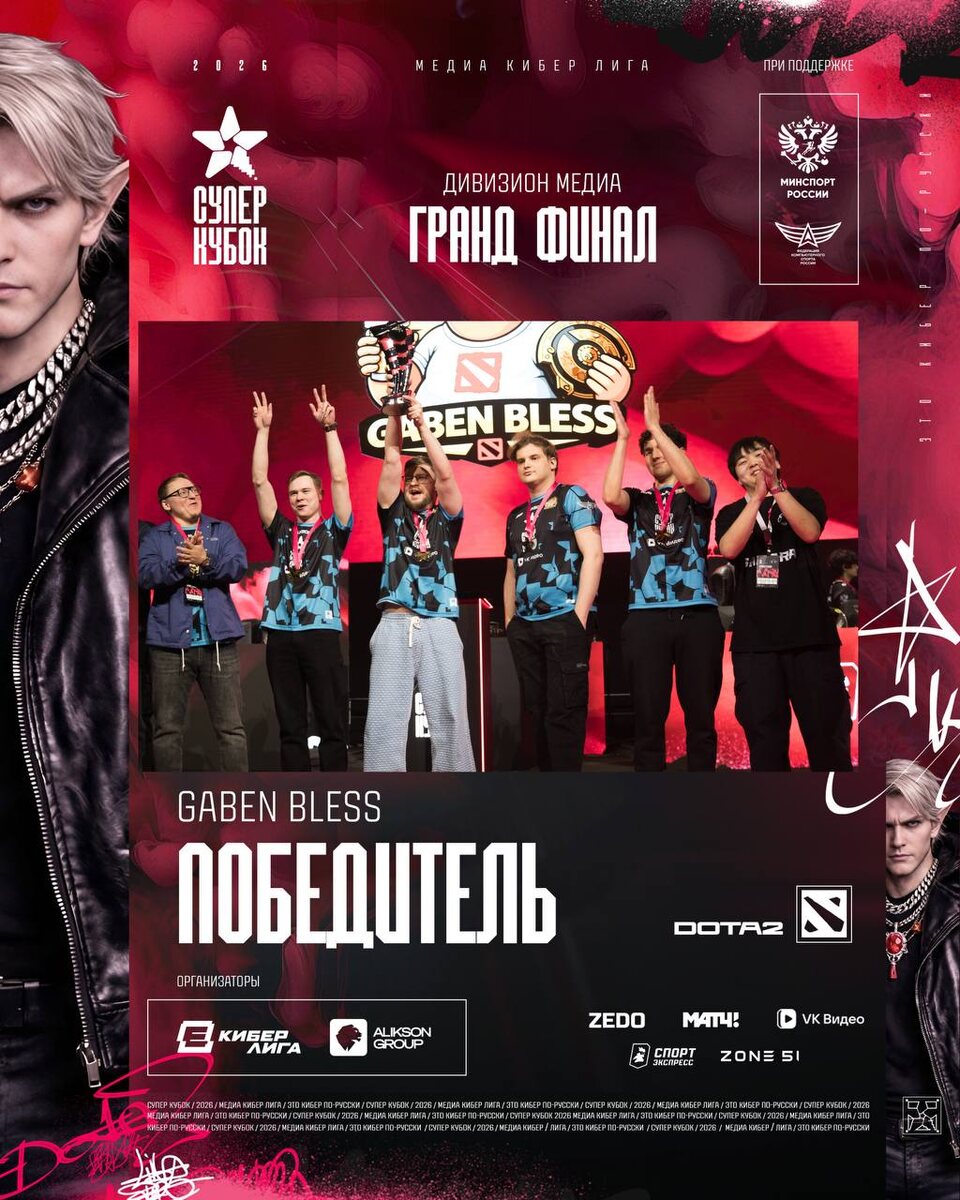 В Москве завершился гранд-финал дивизиона МЕДИА Суперкубка Медиа Кибер Лиги. В решающем матче команда GABEN BLESS одержала победу над HARDCORE TEAM со счётом 2:1 и стала победителем турнира. Финальная серия прошла в напряжённой борьбе: обе команды продемонстрировали высокий уровень игры и конкурентную борьбу на протяжении всех карт. Однако в ключевые моменты матча преимущество оказалось на стороне GABEN BLESS, что позволило команде довести серию до победы. HARDCORE TEAM показала достойное выступление, но уступила в решающей части финала. ________________________________________________________________ Суперкубок Медиа Кибер Лиги объединил медийные команды и киберспорт в рамках одного события, завершив турнир ярким финалом и определив победителя дивизиона МЕДИА.