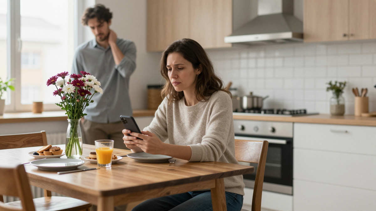 Вечером он вернулся, увидел Катин букет на столе, и я заметила, как он на секунду замер. Рука потянулась к затылку — привычка его, когда чувствует, что где-то промахнулся. Потёр шею, посмотрел на меня.