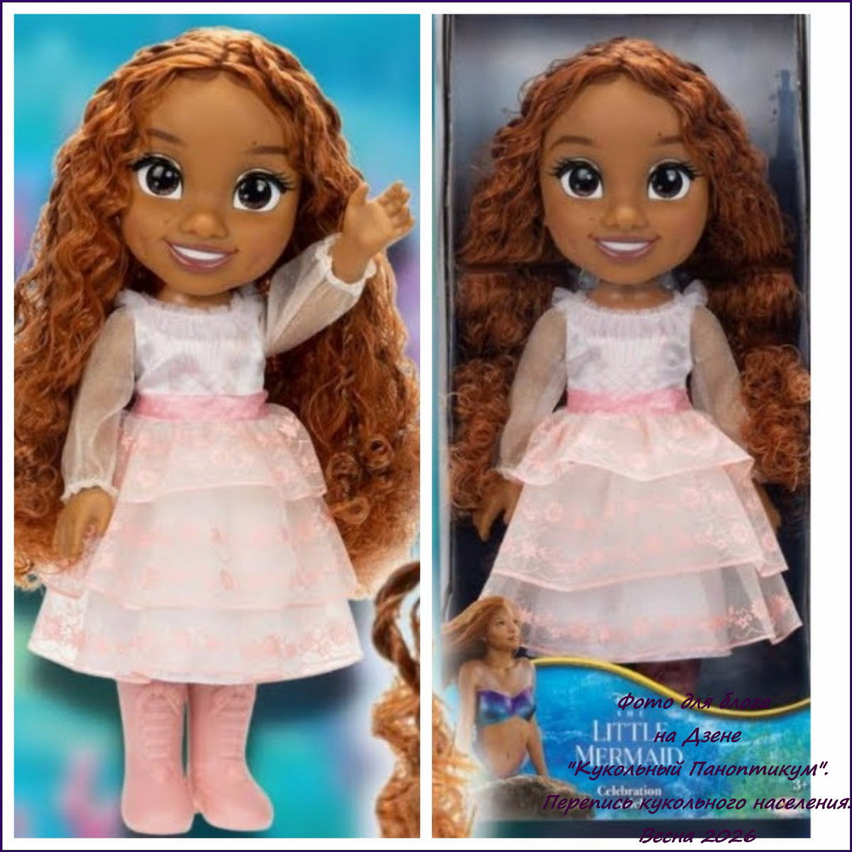 Первая героиня нашего обзора — это невероятно милая Ариэль (Ariel) из мультфильма "The Little Mermaid" ("Русалочка"), выпущенная в серии Celebration компанией Jakks Pacific. 🌊✨ Эта малышка выполнена в формате Petite Doll (примерно 30-35 см), что делает её идеальной для маленьких принцесс и коллекционеров миниатюрных кукол.
