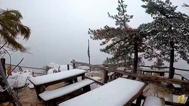 Снег на Парните: гору припорошило, температура опустилась до −3°C