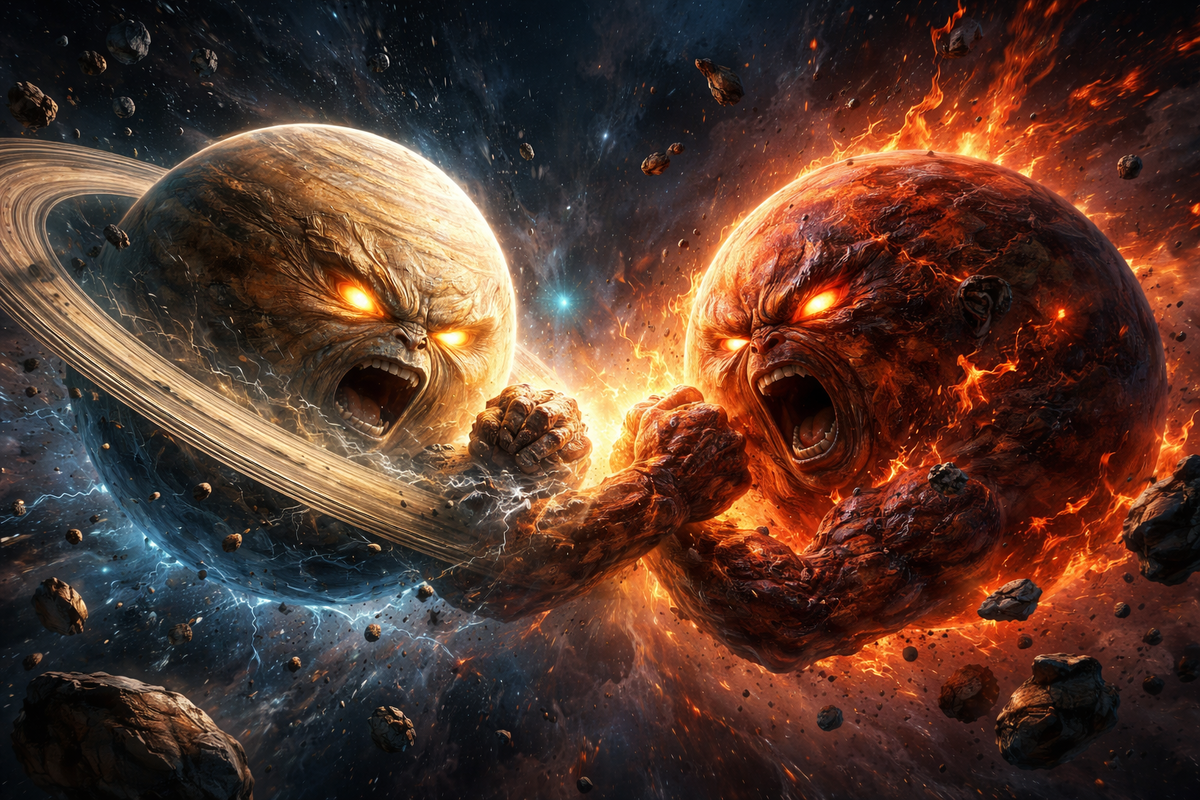 Потому что он не атакует с холодной головой — он атакует из накопленной боли. Из лет терпения. Из всех проглоченных обид, из всех раз, когда он молчал, когда отступал, когда держался. Всё это выходит разом — и разрушения от этого больше, чем от любого «сильного» Марса, который злится быстро, громко, и так же быстро успокаивается.
