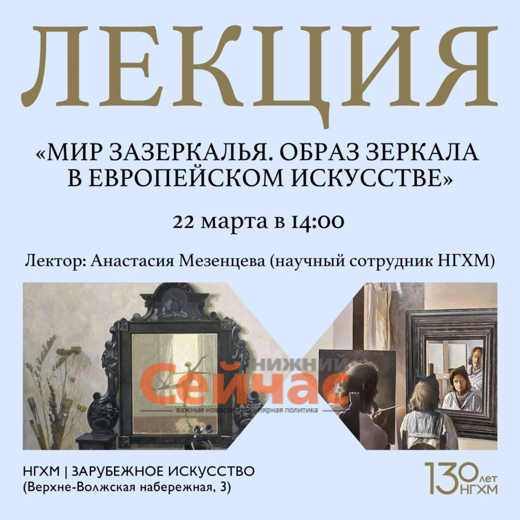 В Нижегородском государственном художественном музее состоится лекция «Мир зазеркалья. Образ зеркала в европейском искусстве». Гостям расскажут, как художники на протяжении веков использовали возможности игры отражений. В европейской культуре зеркалу приписывали мистические свойства: его считали происками нечистой силы, видели в нем способ предсказывать будущее и ворожить. Со временем привычный предмет быта стал важным художественным инструментом, позволяющим показать то, что напрямую изобразить было нельзя. Лекцию прочтет научный сотрудник отдела зарубежного искусства НГХМ Анастасия Мезенцева. Мероприятие пройдет 22 марта, в 14:00 в здании музея на Верхне-Волжской набережной, 3. 12+ Фото: НГХМ