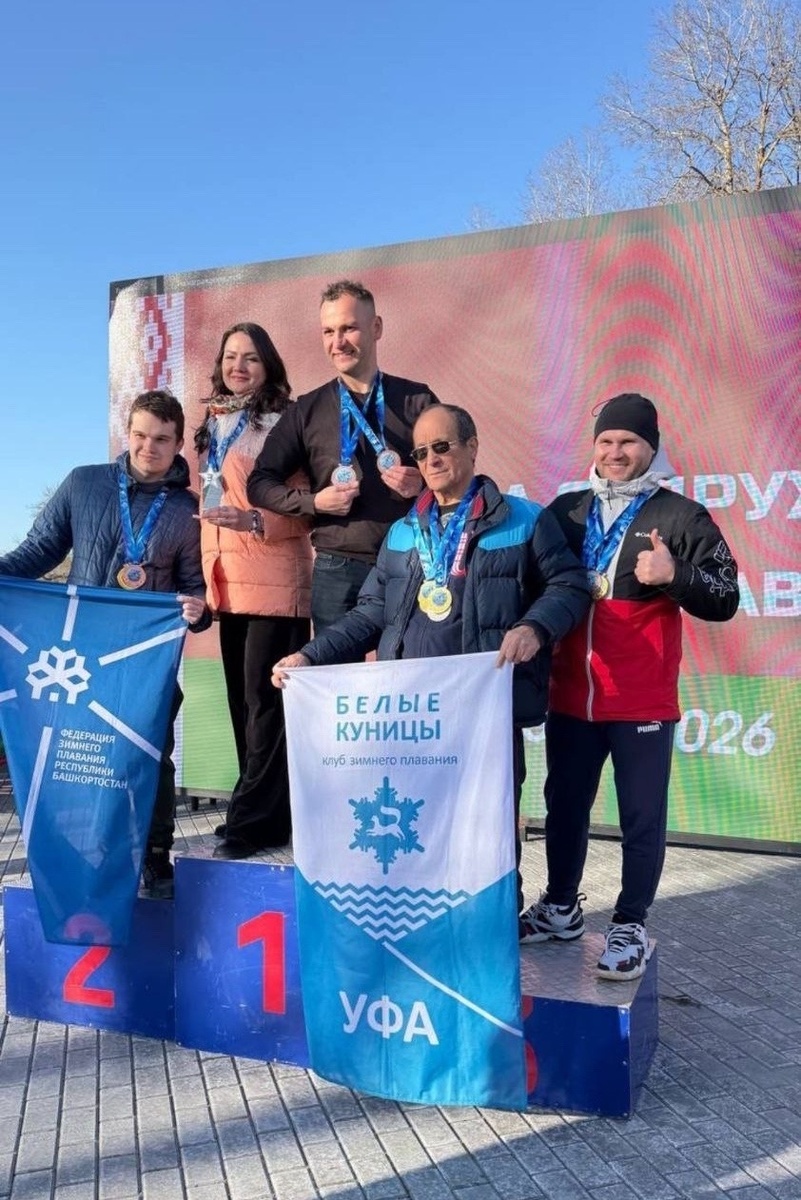 В Минске прошли Международные соревнования по зимнему плаванию «Кубок СНГ 2026». Башкирию представляли Данил Остальцев, Кирилл Трифонов, Олег Владимирцев, Ринат Мансуров и Расиля Койчева. Спортсмены показали отличные результаты. Данил Остальцев проплыл быстрее всех и завоевал золотые медали на дистанциях 25м, 50м и 100м вольный стиль, 50м брасс, 50м баттерфляй. В эстафете смешанной комбинированной занял третье место. Не было равных Кириллу Трифонову сразу в семи дисциплинах, а именно 25м, 50м, 100м, 200м вольный стиль, 25м, 100м, 200м брасс. Везде - золотые медали. А так же в эстафете Кирилл помог нашей команде получить бронзовые награды. Олег Владимирцев завоевал четыре бронзовые медали на дистанциях 25м баттерфляй, 50м баттерфляй, 200м вольный стиль и в командной эстафете. Еще в двух дисциплинах Олег остался в шаге от пьедестала, заняв четвертые места на дистанциях 100м вольный стиль и 200м брасс. Расиля Койчева вырвала у своих конкуренток два золота в дисциплинах 25м вольный стиль и
