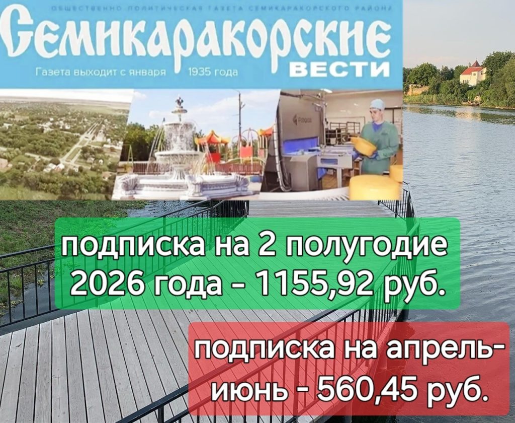 С 6 по 16 апреля российские отделения связи проводят Всероссийскую декаду подписки, приглашая всех желающих к участию. В течение этого мероприятия вы сможете оформить подписку на нашу районную газету «Семикаракорские вести» на предстоящий квартал, с апреля по июнь, по привлекательной цене – всего 560 рублей 45 копеек. Воспользуйтесь этим шансом, чтобы продолжать читать актуальные выпуски вашей любимой газеты. Оформите продление подписки уже сегодня! Подписка на районную газету «Семикаракорские вести» — прекрасный подарок родным и близким! Читайте нас в MAX