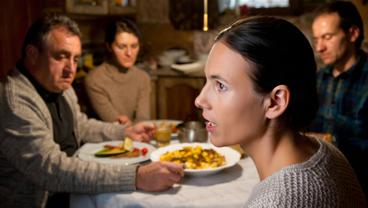 В ту субботу гости пришли к шести. Галина успела поставить на стол всё: запечённую курицу, салат, пирожки с капустой, которые Вадим любил особо. Сама села с краю, как обычно.