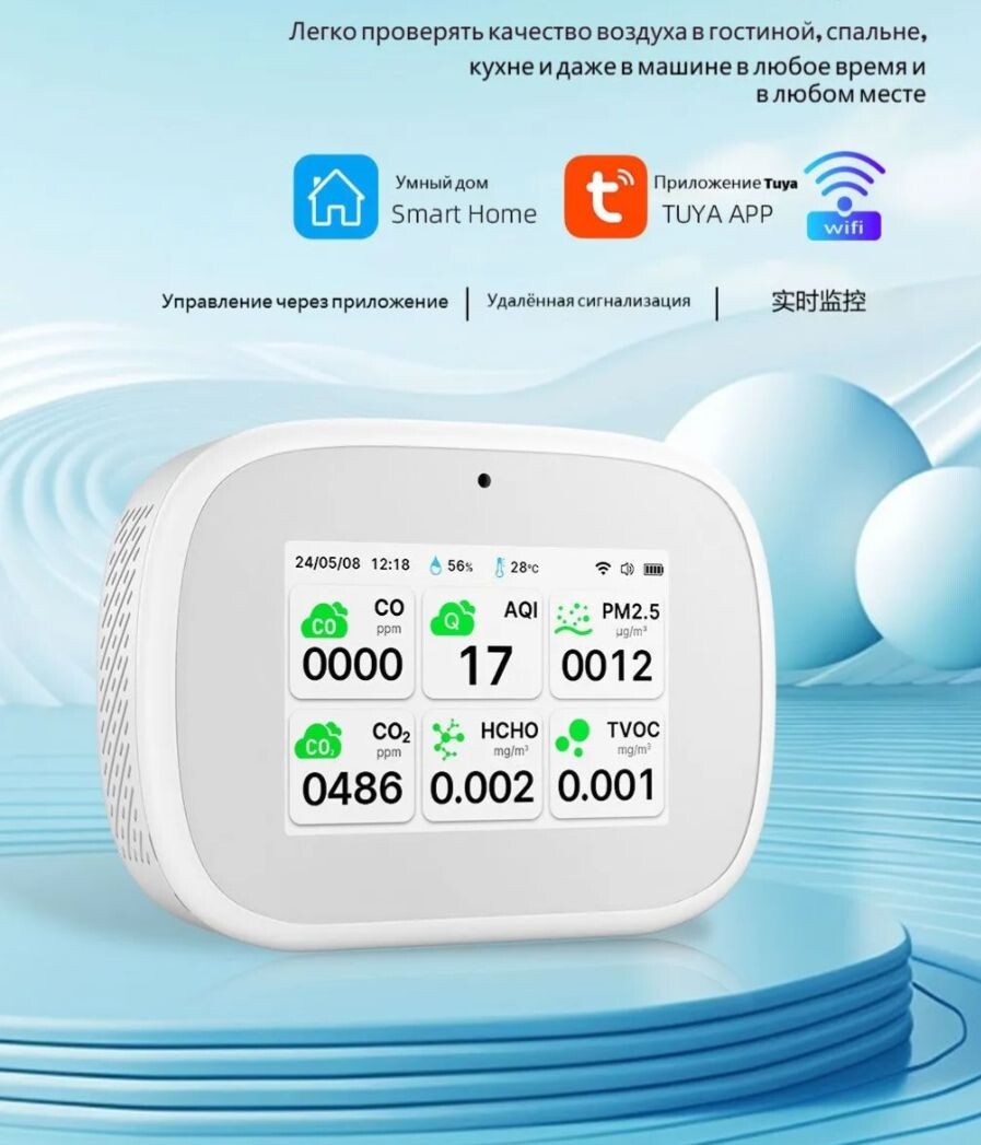 Модель PV33 10 in 1 Измеряемые параметры CO2/PM2.5/PM1.0/PM10/HCHO/TVOC/Температура / Влажность Размеры корпуса 120*89*35mm инфракрасные датчики углекислого газа NDIR, лазерные датчики твёрдых частиц, Встроенный аккумулятор: ёмкость 3000 мАч, Питание USB-C. Два варианта исполнения передней панели . Белая и черная. Символы на экране. Кнопки управления. Оповещение о превышении допустимой концентрации. Окно приложения Tuya. В продаже с конца 2025 г. Отрицательных отзывов не замечено. Подписывайтесь на канал, чтобы не пропустить обновления.