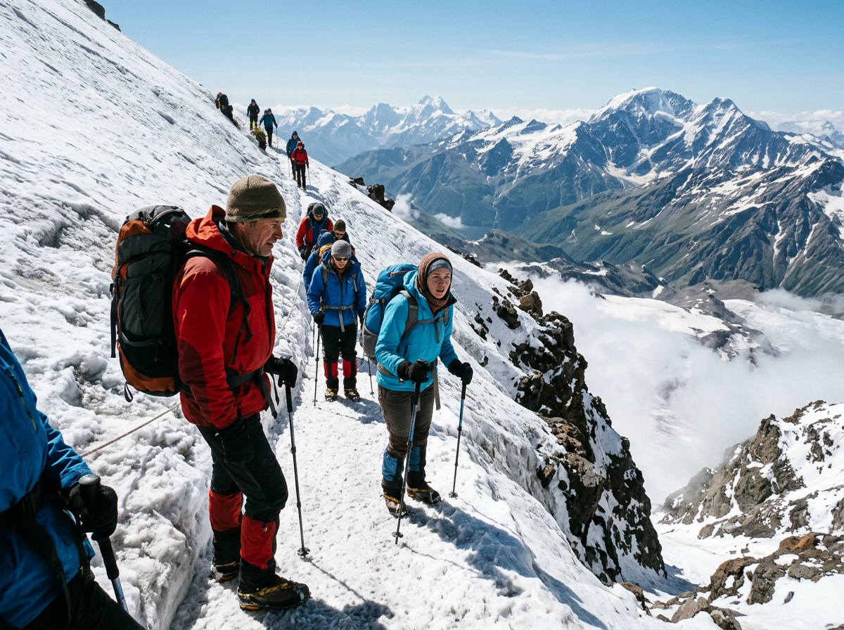 Гид Володя работал на Эльбрусе двенадцатый сезон. Группы попадались разные: бывалые туристы, корпоративные команды, иногда совсем зелёные новички. Одну вещь он видел каждый раз. На высоте около 4000 метров, когда тропа сужалась и справа открывался склон, кто-нибудь обязательно останавливался. И нет, не от усталости. От страха. Человек смотрел вниз, потом вверх на оставшийся путь, и замирал. Ноги есть, силы есть, снаряжение в порядке. А двигаться не может.