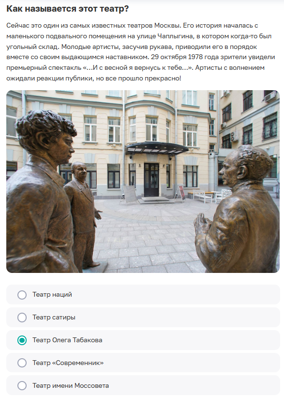 «Где оживают истории: театральная Москва». Правильные ответы викторину на сайте Активный гражданин