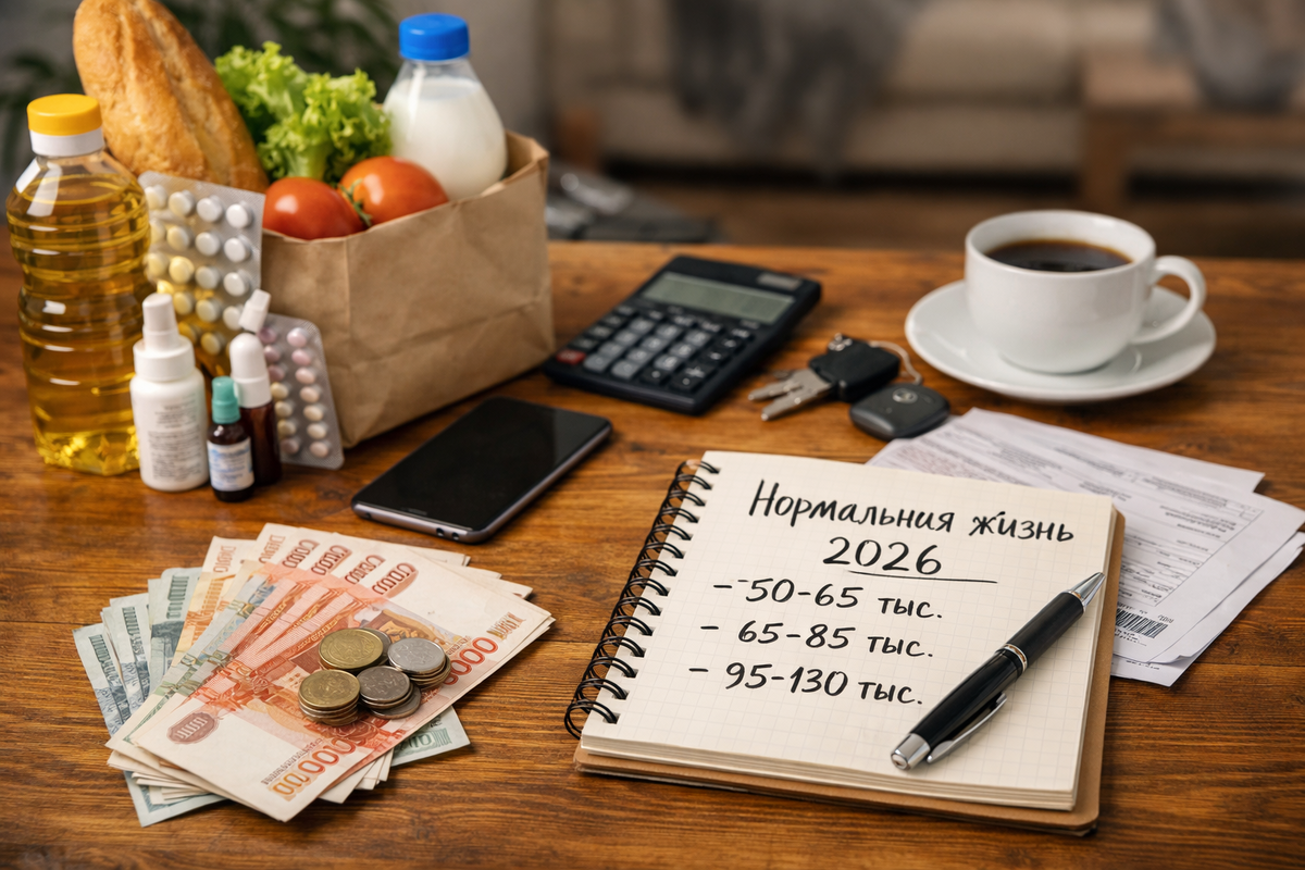 Для одного «нормально» — это вовремя платить за квартиру, покупать обычные продукты, иногда ходить в кафе и не бояться аптеки. Для другого «нормально» — это еще и такси, отпуск раз в год, фитнес, доставка и возможность не считать мелочь у кассы. Поэтому вопрос надо ставить честно: сколько в 2026 году стоит не выживание, а спокойная бытовая жизнь без роскоши?
