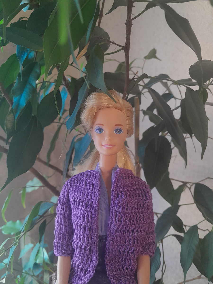 Малышку (наверняка не знаю, кто она, скорее всего, дочка Сэнди или другого аналога из 90-х) помыла, нарядила и связала шапочку. Резина у головы очень тоненькая, боюсь даже пробовать прошивать, а паричок сразу добавляет ненужный объем. Может, сделать прядки или косички, которые выглядывают из-под шапочки🤔