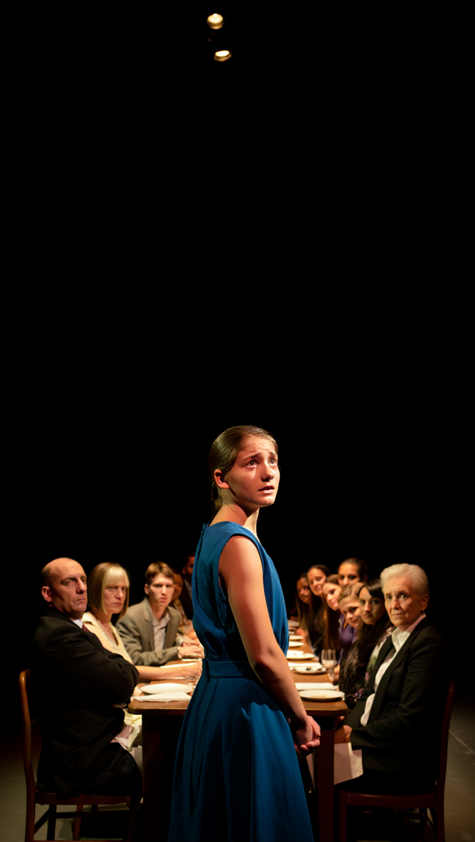 Белая скатерть. Хрустальные бокалы. Запах жареного мяса и духов — слишком тяжёлых, дорогих. Двенадцать человек за