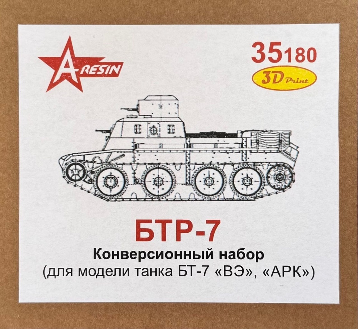 A-Resin из Москвы выпустила на 3D-принтере конверсионный набор для постройки модели БТР-7 в масштабе 1/35 и спицованные колеса шасси для