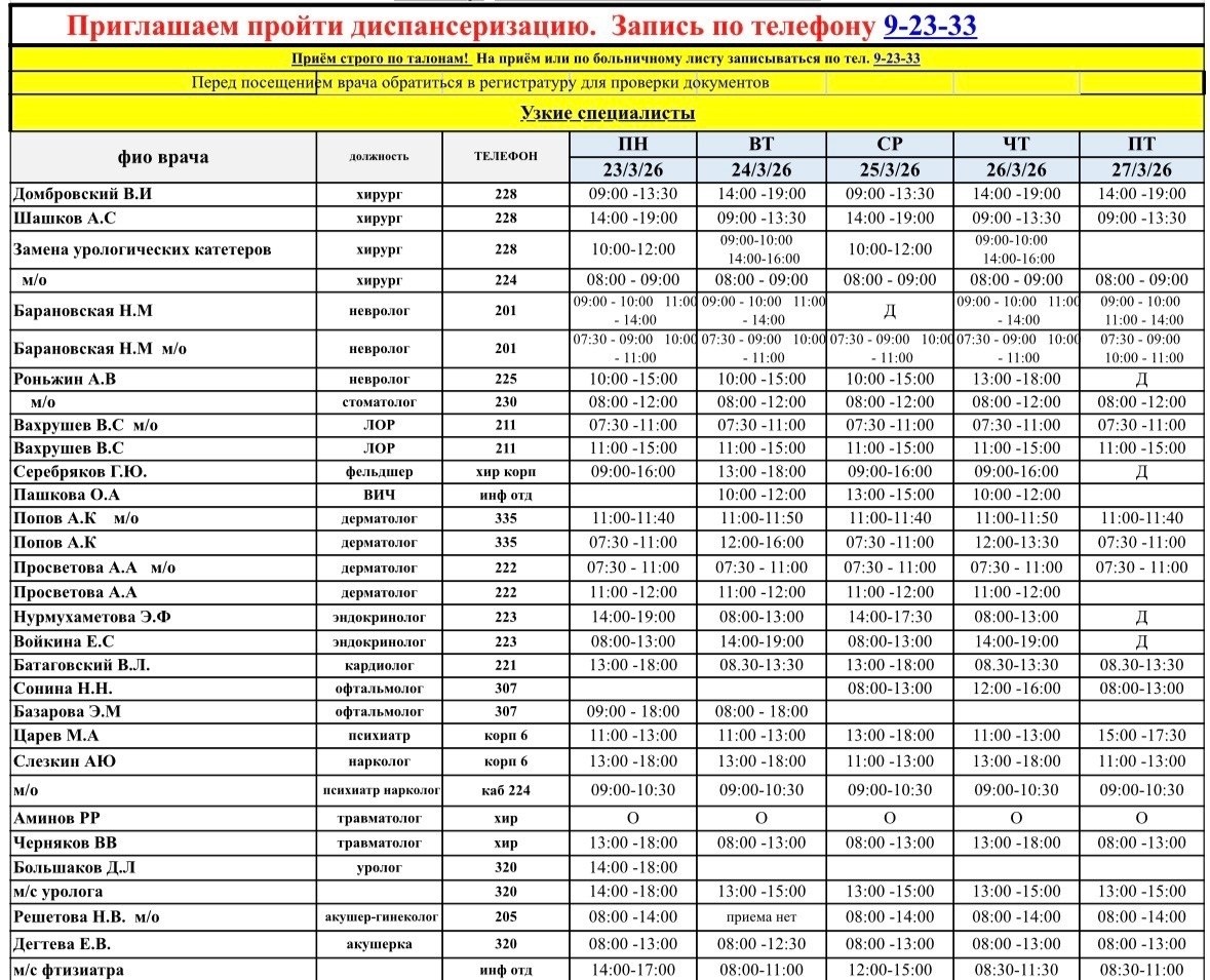 График работы врачей с 23 марта