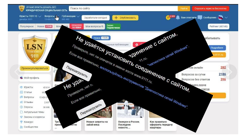 Объект мониторинга: Веб-ресурс 9111.ru По состоянию на 22 марта 2026 года зафиксированы масштабные сбои в работе портала 9111.ru. Начало сбоя отмечено 21 марта 2026 года. Пользователи из различных регионов Российской Федерации сообщают о невозможности входа на сайт, ошибках при загрузке страниц и полном отсутствии доступа к сервису. Проблема носит массовый характер, что подтверждается данными сервисов мониторинга доступности (в том числе downradar.ru). На основании анализа открытой информации и технических данных, выделен ряд потенциальных причин нестабильной работы ресурса: В начале марта 2026 года была зафиксирована крупная волна DDoS-атак на российские интернет-ресурсы. В атаках участвовал ботнет Kimwolf, задействовавший более 4 миллионов уникальных IP-адресов. Основными целями стали государственные порталы (сайты Роскомнадзора, Министерства обороны и иные ведомственные ресурсы). На данный момент в открытых источниках отсутст