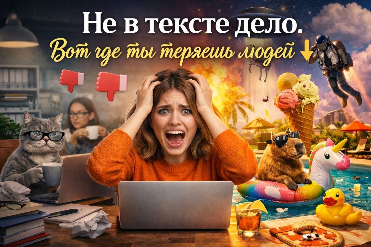 И дело не в тексте. ⬇️ Мозг человека устроен так, что визуальную информацию он обрабатывает в десятки раз быстрее, чем текст. Пока вы думаете, что человек «решает -читать или нет», его мозг уже всё решил. За доли секунды. Как это происходит: Сначала включается древняя часть мозга - та, которая отвечает за выживание. Она задаёт один вопрос: «Это важно для меня или нет?» ✅И отвечает на него… по картинке. ⬇️ Не по тексту. Не по смыслу. Не по пользе. ⬇️ По визуалу. Если изображение: привычное, безопасное, «как у всех», то мозг не тратит энергию и выбирает: «не важно» → пролистать Это называется: экономия когнитивных ресурсов Мозг не хочет анализировать. Он хочет быстро фильтровать. И вот то, о чём редко говорят: Ваш текст может быть сильным. Глубоким. Полезным. Но если картинка не прошла этот первый фильтр, то для мозга ваш контент просто не существует. Поэтому выигрывают не самые красивые изображения. А те, которые: — выбиваются из потока — вызывают реакцию — останавливают взгля