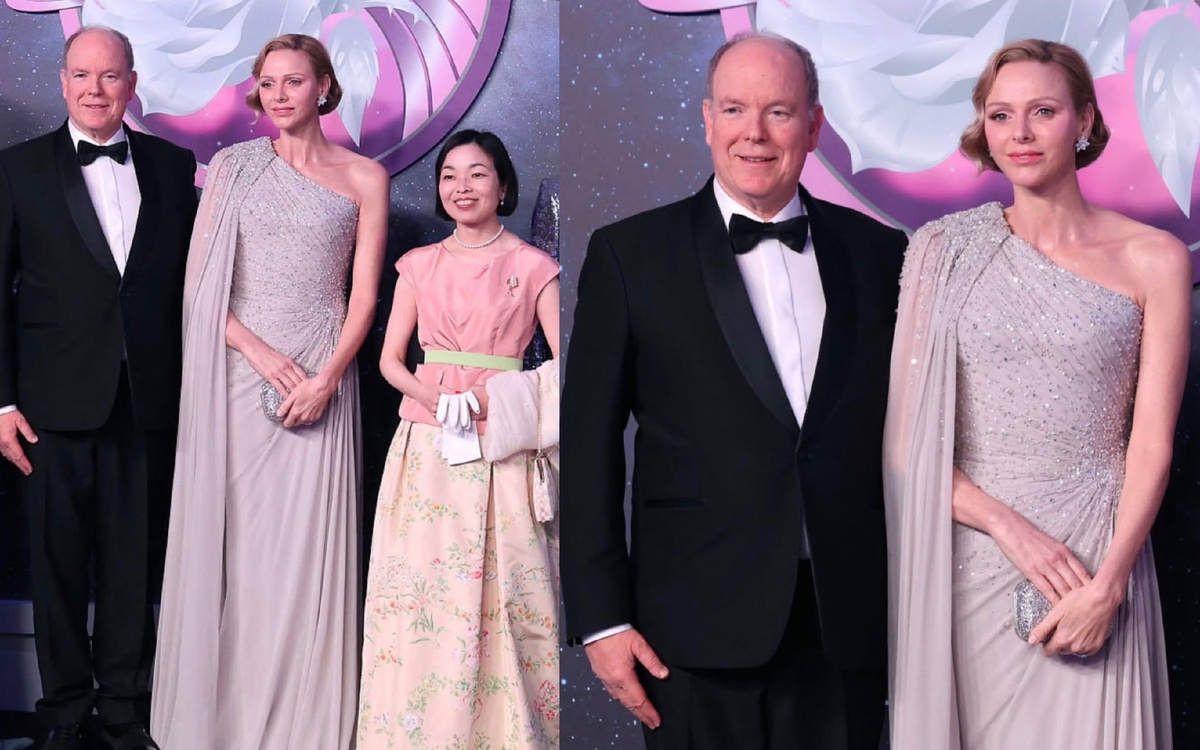 В Монако есть вечер, который каждый год ждут не меньше, чем крупнейшие модные показы. Это благотворительный «Бал роз», легендарный светский вечер, основанный княгиней Грейс Келли ещё в 1954 году. Он проходит в залах Sporting Monte Carlo, где пространство на одну ночь превращается в огромный сад из роз. Гости ужинают, слушают музыку, танцуют, а средства от вечера направляются в Фонд княгини Грейс, который поддерживает гуманитарные и культурные проекты. Среди гостей всегда собирается вся княжеская семья. Но каждый год у вечера есть свой главный модный момент. В этот раз им стал выход княгини Шарлен. На красной дорожке «Бала роз» она появилась рядом с князем Альбером II в платье Elie Saab, и это тот случай, когда наряд буквально притягивает взгляд с первого кадра. Перед нами редкий оттенок вечернего серебра. В ткани читается мягкий розово-лиловый подтон, будто холодное сияние металла смешали с оттенком лепестков роз. Цвет выглядит невероятно благородно и дорогo, особенно в свете вечерних