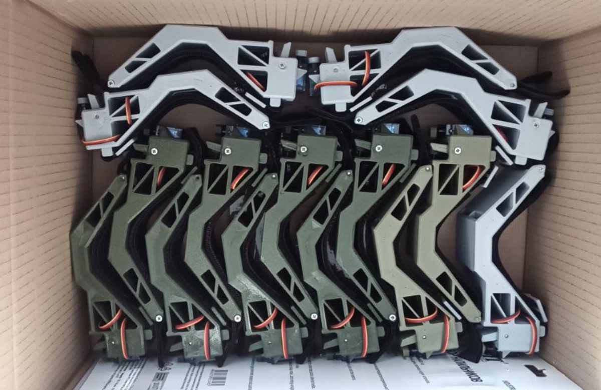 Волонтёрская группа 3D-инженеров «Умельцы-Фронту» продолжает усиливать подразделения, работающие на передовой. Очередная партия помощи — 40 сбрасывателей, напечатанных на 3D-принтере, — отправлена из Петербурга бойцам 186-го отдельного разведывательного батальона 20 марта. В груз вошли две модели одинарных сбрасывателей, разработанных для разных типов коптеров: «Комсомолец» и «Октябрёнок». «Комсомолец» — увеличенная модель для тяжёлых дронов с рамой 10–13 дюймов. Устройство отличается бо́льшим углом ложемента, что позволяет работать с боекомплектом диаметром до 110 мм и выше. Вес груза не нагружает вал сервопривода — это исключает его поломку и даёт возможность надёжно фиксировать боеприпасы липучками. «Октябрёнок» — компактный вариант для дронов размерностью 7–10 дюймов. Модель рассчитана на использование боеприпасов диаметром от 50 до 85 мм. Как и в старшей версии, нагрузка на сервопривод отсутствует, а язычок крепления при снаряжении вставляется и защёлкивается — вращать вал сервы в