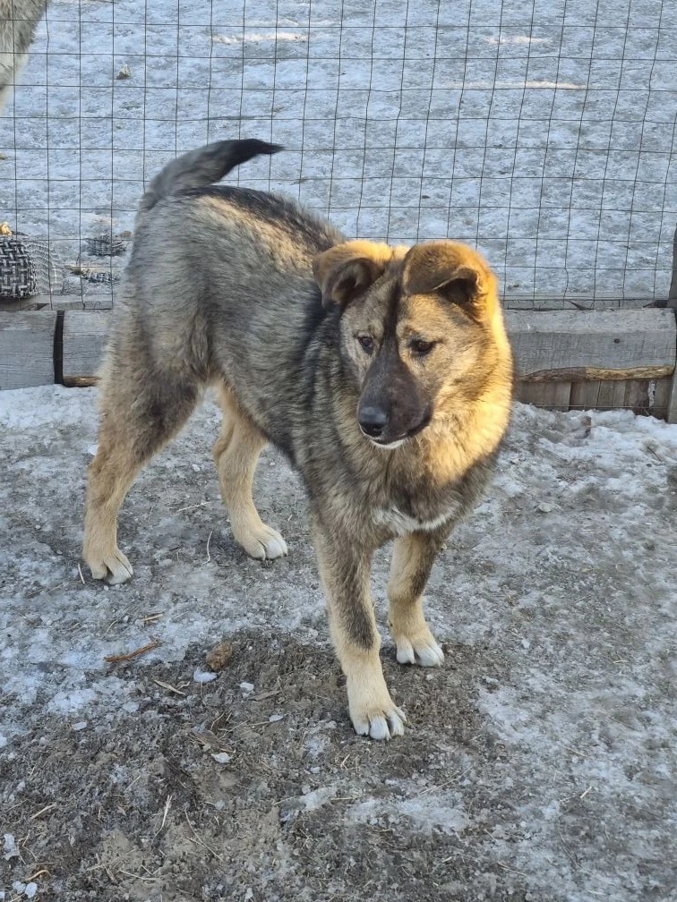 Лешего посадили на цепь возле ангара. Он по прежнему караулит продуктовые запасы. Подружился и с собаками, и с работниками. Абсолютно адекватный пёс.