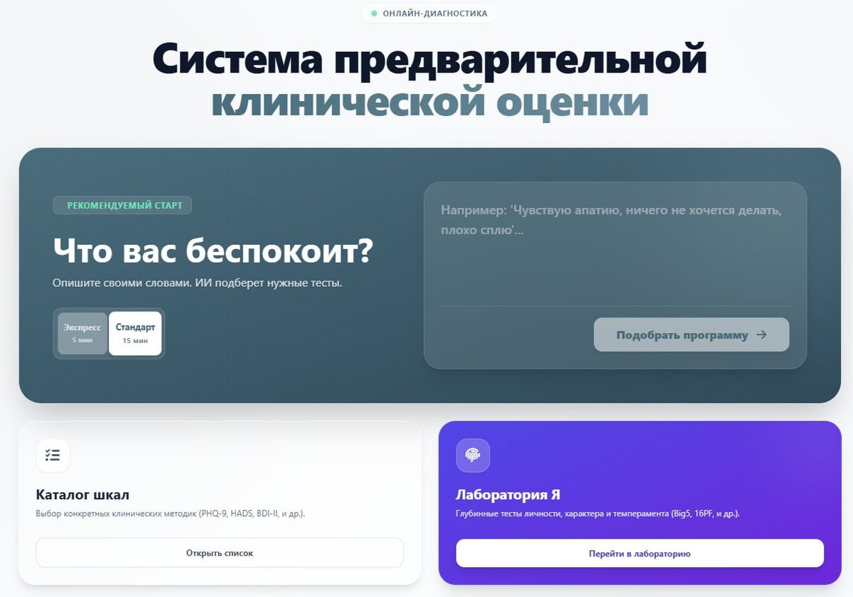 ! 🙌🏻Встречайте: cnpp.ru/tests - бесплатный сервис клинической самодиагностики от Центра «Диалектика». Зачем мы потратили на это ресурсы? Чтобы у вас на руках было физическое доказательство: с вами действительно что-то происходит, вам не показалось, вы не обленились. Что вы получаете внутри: ✅ Достоверные клинические шкалы с доказанной эффективностью (тесты на депрессию, тревогу, выгорание, ПРЛ и другие). ✅ Понятную расшифровку результатов с учетом именно ваших ответов. ✅ Информацию о том, как это состояние влияет на вашу жизнь и работу. ✅ PDF-отчет, который можно просто переслать своему терапевту одной ссылкой или файлом, сняв с себя необходимость всё объяснять с нуля. Чего здесь ТОЧНО НЕТ: ❌ Мы не ставим диагнозы (это делает только врач). ❌ Мы не просим ваш номер телефона или почту для спама. ❌ Мы не храним ваши данные в открытом доступе. Это ваш личный, безопасный инструмент. Пройдите тест, чтобы наконец-то увидеть реальную картину своего состояния. Начать можно прямо сейчас: