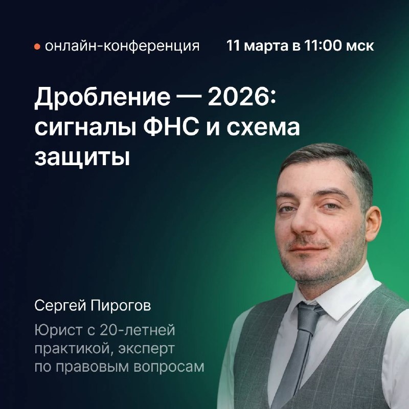 💙 Про признаки, новые подходы ФНС и то, как защититься Вам расскажет приглашенный спикер 👤 Сергей Пирогов Юрист с 20-летней практикой, эксперт по правовым вопросам в налоговом планировании и управлении рисками. Чтобы принять участие в розыгрыше или пройти тестирование своих знаний по налоговой реформе 2026 подписывайтесь на канал 📣 Когда: 11 марта в 11:00 (мск) Формат: онлайн Принять участие или посмотреть полную программу мероприятия 👇🏻 🔗 Регистрация по ссылке.