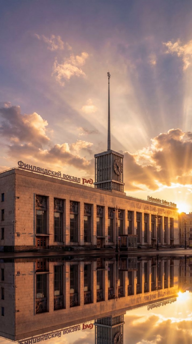 Финляндский вокзал в лучах закатного солнца