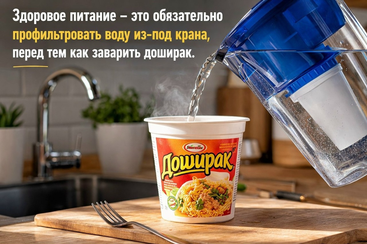 ✏️ Планета здоровья: Здоровое питание подразумевает обязательное использование фильтрованной воды из-под крана перед приготовлением быстрого обеда.