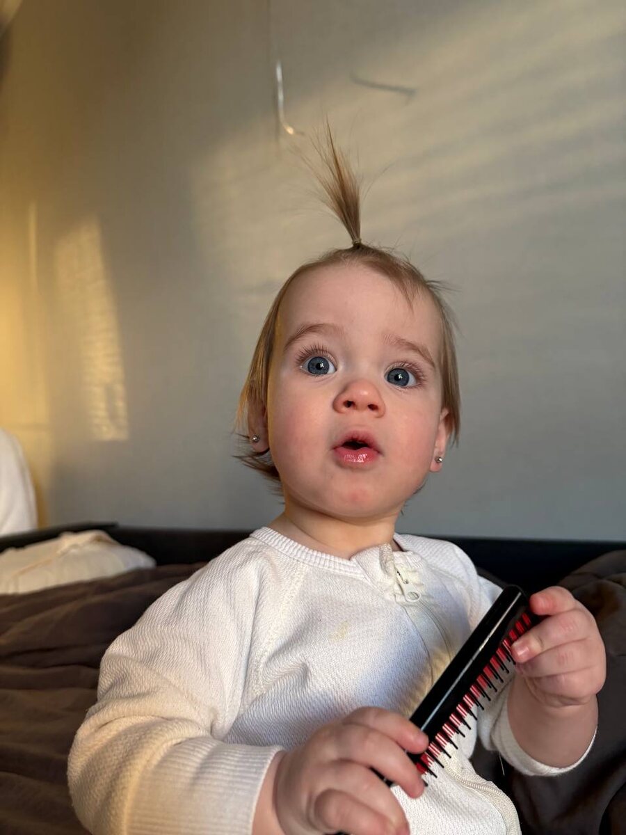 🥹 Такая девочка становиться, в косметике моей уже капается, расчесывается 😍