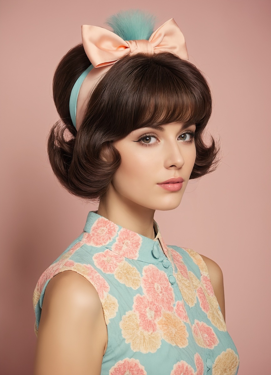 Аксессуары играют ключевую роль в создании образа в стиле 60-х, добавляя яркие акценты и подчеркивая уникальность прически с начесом. Ободки с крупными цветами или в ретро-стиле станут идеальным выбором для завершения укладки. Заколки с жемчугом или блестками помогут добавить нотку роскоши, а яркие цветочные гребни внесут элемент игривости и свежести. Важно размещать их так, чтобы они гармонировали с общим стилем, не перегружая образ.