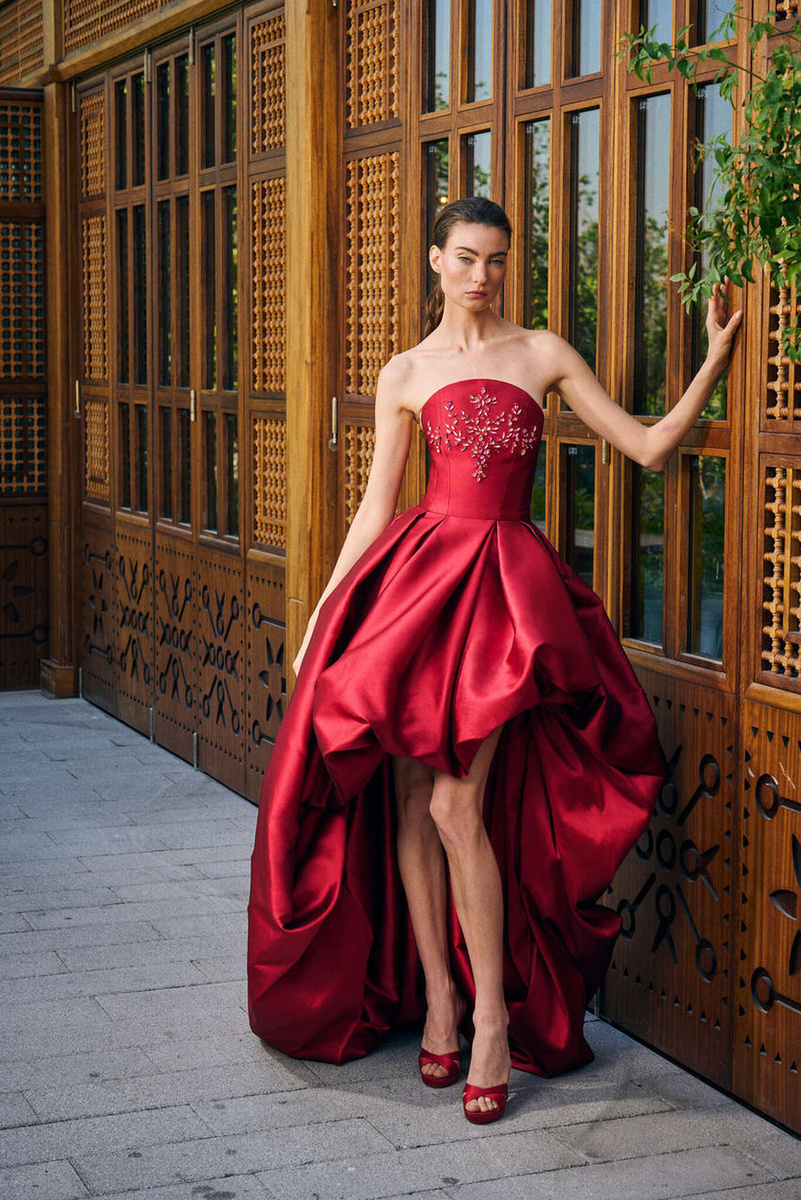 Осенне-зимний лукбук Rami Al Ali 2026–2027 — это история о современной элегантности и уверенной женственности. Дизайнер снова показывает, как вечерняя мода может выглядеть роскошно, но при этом оставаться утончённой и спокойной. В коллекции много чистых, благородных силуэтов. Платья словно выстроены вокруг фигуры: подчёркнутая талия, мягкие линии плеч, плавно падающие юбки и длинные шлейфы. Всё выглядит очень гармонично — без лишней театральности, но с ощущением настоящей высокой моды. Отдельную атмосферу создаёт палитра коллекции. Здесь встречаются кремовые и золотистые оттенки, насыщенный рубиновый, глубокий чёрный, изумрудный и тёплый шоколад. Такие цвета всегда выглядят дорого и вне времени. Они не спорят друг с другом, а создают цельную, благородную гамму. Фактуры тоже играют важную роль. Атлас мягко отражает свет, плотные ткани держат форму, а лёгкие прозрачные элементы добавляют образам воздуха и движения. Благодаря этому каждая модель выглядит выразительно и живо. В целом колле