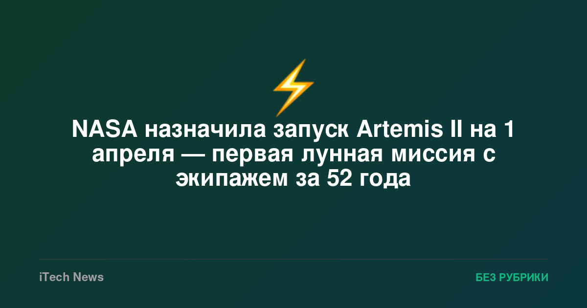 NASA назначила запуск Artemis II на 1 апреля — первая лунная миссия с экипажем за 52 года