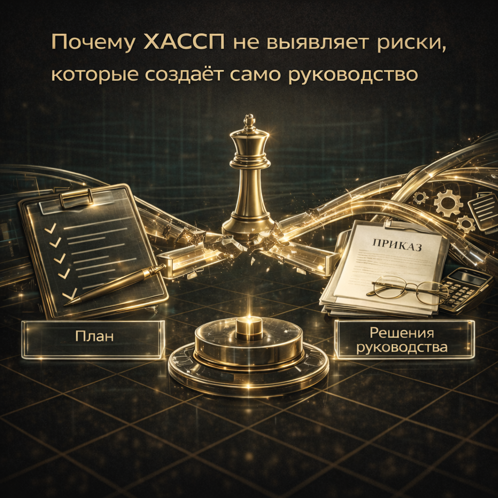 Многие компании воспринимают ХАССП как универсальный инструмент контроля всех рисков, связанных с безопасностью продукции. На практике это не так. Система ХАССП предназначена прежде всего для выявления, оценки и контроля значимых опасностей, связанных с сырьём, этапами производства и точками контроля. Она не заменяет анализ управленческих причин риска, если сами решения руководства создают условия для нарушений. Система ХАССП строится вокруг анализа опасностей и определения мер контроля на конкретных этапах производства. Такой подход эффективен там, где риск можно связать с сырьём, технологической операцией, параметром процесса или критической контрольной точкой. Однако решения руководства, например: