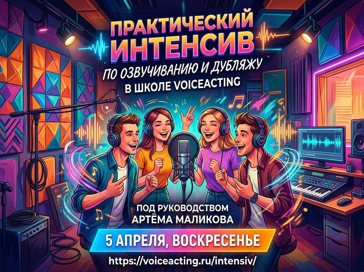 Хотите попробовать себя в мире озвучивания и понять, как работают профессионалы? Тогда приглашаем вас на практический интенсив по озвучиванию и дубляжу, который пройдет 5 апреля в Москве в школе озвучивания и дубляжа VOICEACTING. Если вы хотите узнать, как устроена работа с голосом, и давно ищете курсы дубляжа для начинающих, этот интенсив станет отличной возможностью сделать первый шаг в новую профессию. ## Что ждет вас на интенсиве На мероприятии вы познакомитесь с основными направлениями озвучивания и дубляжа, которые востребованы в индустрии: - документальное кино - закадровое озвучивание игрового фильма - озвучивание российских фильмов - дублирование фильмов Это особенно полезно для тех, кто только начинает свой путь и хочет понять, какое направление подходит именно ему. ## Для кого подойдет интенсив Этот практический интенсив создан специально для новичков, которые: - хотят попробовать себя в озвучивании и дубляже - ищут качественные курсы дубляжа - мечтают развить голос,