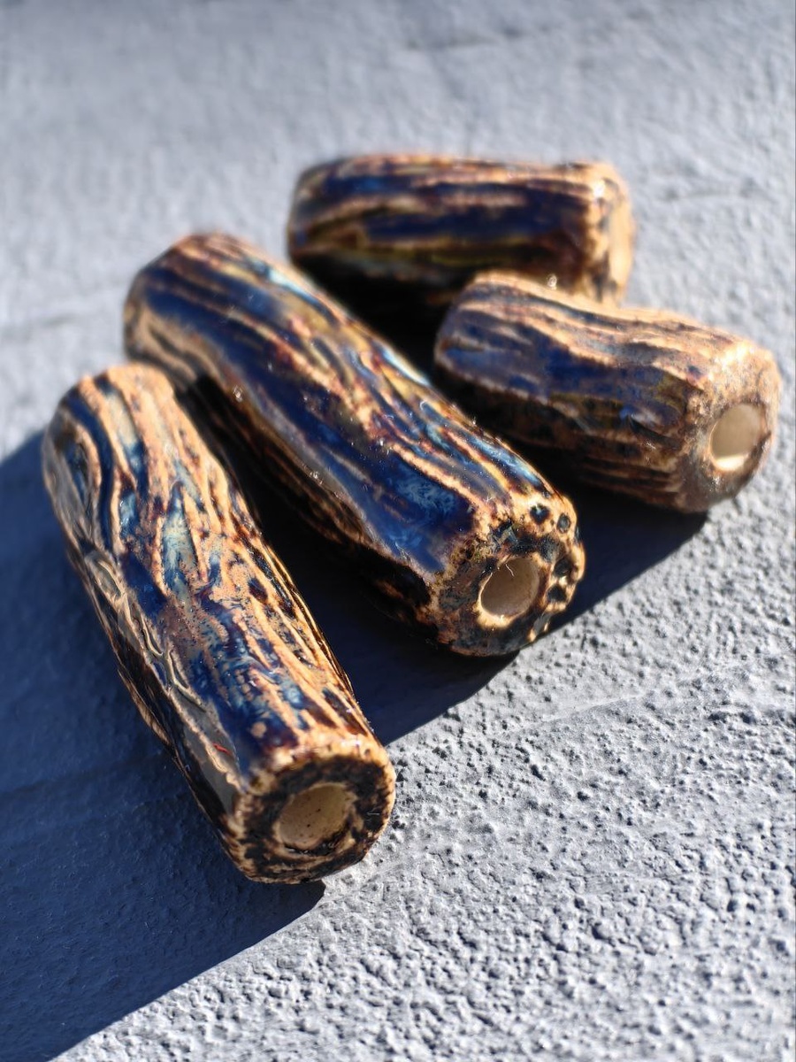 Вчера был год с первой попытки сделать трубочки под дерево. Каждый доступный выходной - за лепкой в студии. Чаще всего - бусинки. Иногда - крошечные тарелочки и подставки под благовония. В сочетании глазурей и материалов здесь еще больше вариаций, чем в стекле на горелке. Не факт, что волшебная глянцевая поверхность на твоей массе будет такого же цвета, как на картинке. Слой, разные добавки, да и просто исходное сырье - вносят коррективы. Радует, что шаг за шагом появляются вполне рабочие варианты, хотя не бежать за новыми я не могу)). И записывать приходится даже больше, чем со стеклом. Но мне нравится результат — деревяшечки😊 #непростекло #керамика #проМашиныбусины #микерамика #gavrilin_glazes