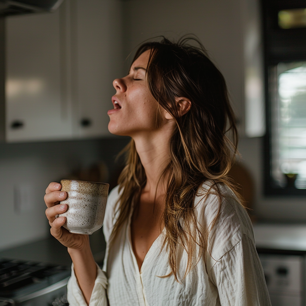 проснулась → душ → окончательно проснулась.